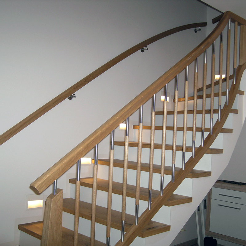 Der Treppenhandlauf aus Holz ist nicht nur ein wichtiges Sicherheitselement, sondern auch ein gestalterisches Detail, das den Charakter einer Treppe maßgeblich prägt. Der Handlauf bietet Stabilität und Unterstützung beim Auf- und Absteigen und verleiht der Treppe gleichzeitig eine natürliche und warme Note. Holz als Material für den Handlauf ist besonders beliebt, da es eine angenehme Haptik und eine zeitlose Ästhetik bietet.