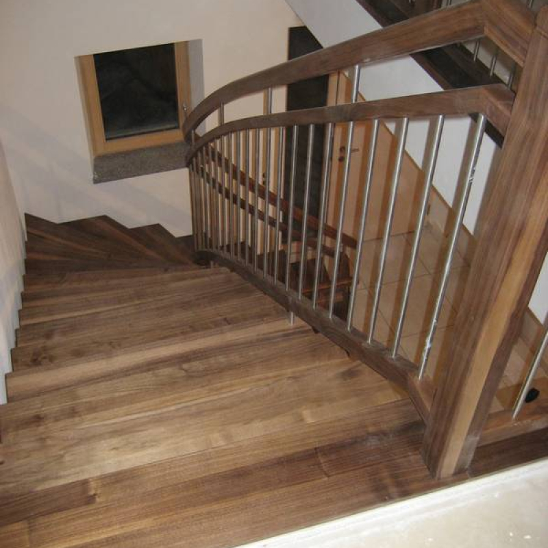 Die aufgesattelte Wangenstiege ist eine optisch leicht wirkende Stiegenart.