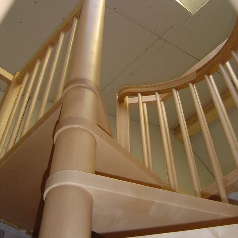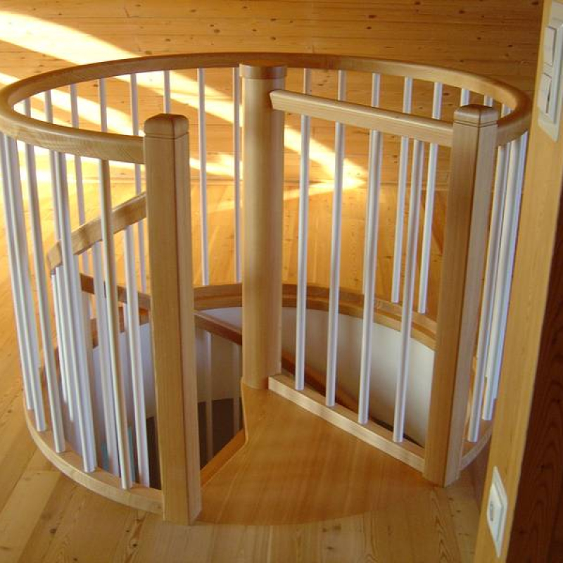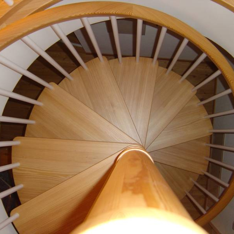 Gewendelte Stiegen sind heutzutage meistens eine Stiegenart mit Standrohr, aufgefädelten Stufen und Zwischenkonsolen. Außenseitige Wangen oder Verbindungsbolzen stabilisieren die Trittstufen.